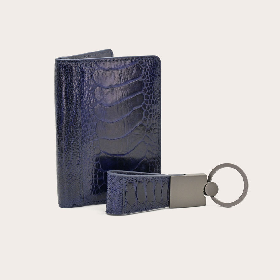 Experience refined luxury in this exclusive wallet and keychain set, crafted from authentic ostrich leg leather. Distinguished by its natural, intricate markings, each piece tells its own story through the bold texture and rich depth unique to this exquisite leather. Masterfully handcrafted, the wallet and keychain combine resilience with sophistication, designed to age beautifully with time. Crafted for those who embrace elegance in the details, this set is a statement of enduring style and quality.